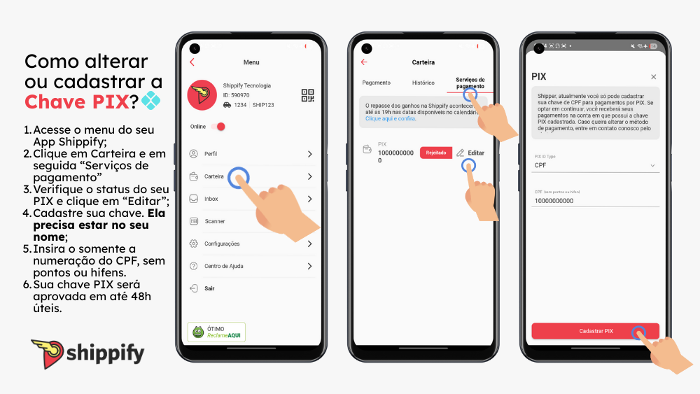 A Shippify é uma plataforma de tecnologia e logística que conecta entregadores autônomos a oportunidades de entrega. Os motoristas cadastrados não possuem vínculo empregatício ou contrato formal com a Shippify. Todas as entregas são realizadas de forma independente e voluntária, garantindo flexibilidade para os parceiros da plataforma.