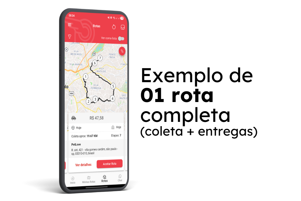 - Para rotas realizadas de moto: valor da rota + R$3,00 por rota completada