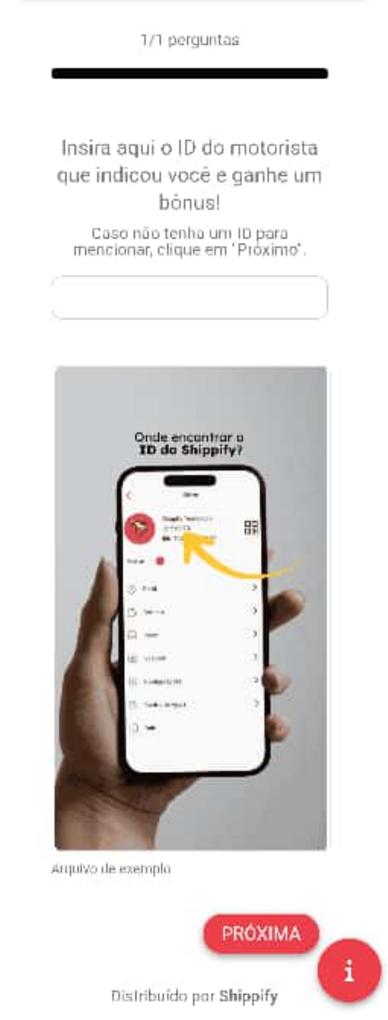 Informe o seu ID do perfil da Shippify para seu amigo, e ele adicionará este número no processo de cadastro, conforme a imagem abaixo: